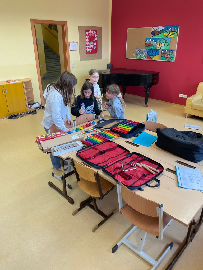 Im Musikunterricht beschäftigten sich die Kinder der 3. und 4. Klasse in den letzten Wochen intensiv mit Carl Orff und seinem Schulwerk.