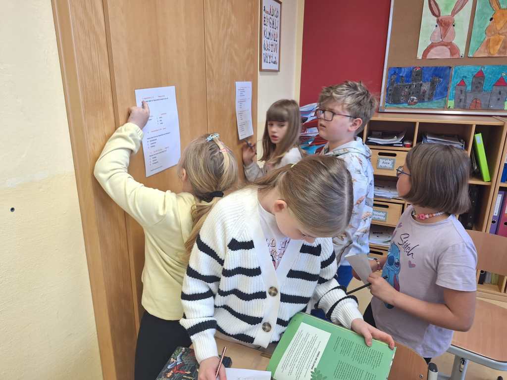 In den Wochen vor und nach Ostern war an unserer Schule der Bücherkoffer, in dem sich preisgekrönte Kinderbücher befinden. Die Kinder der 3. Schulstufe machten eine Rätselrallye mit den Büchern.