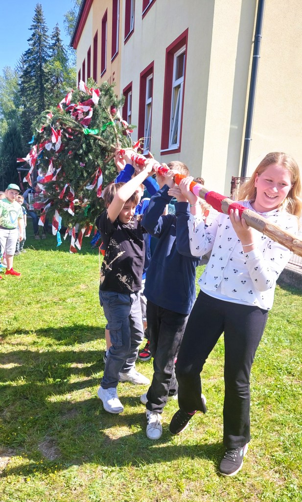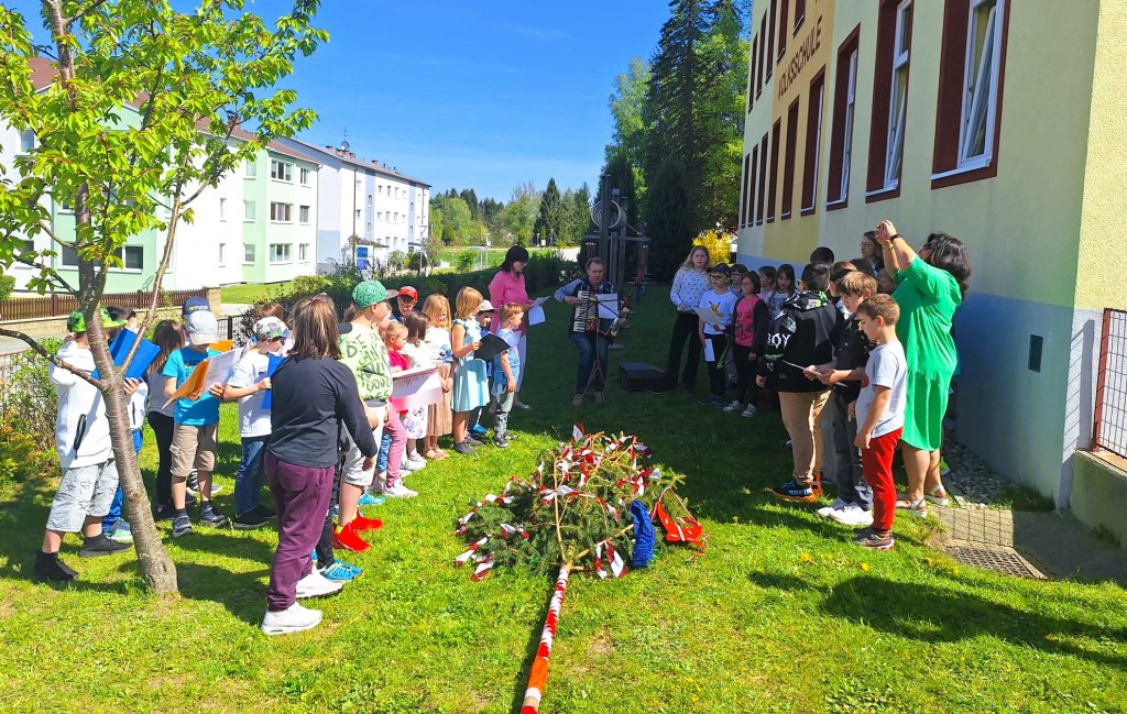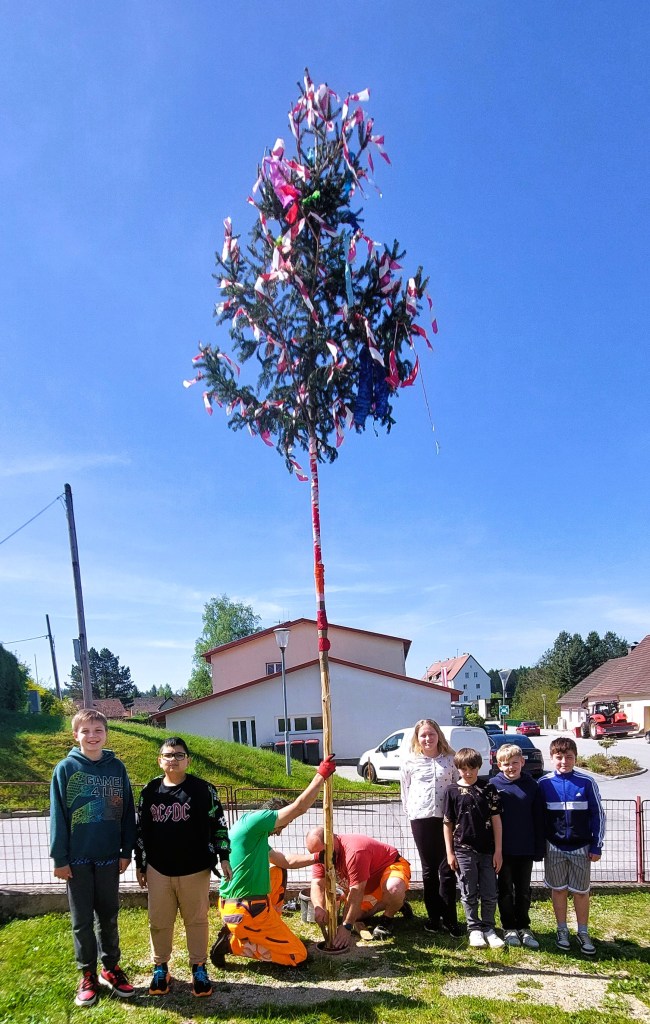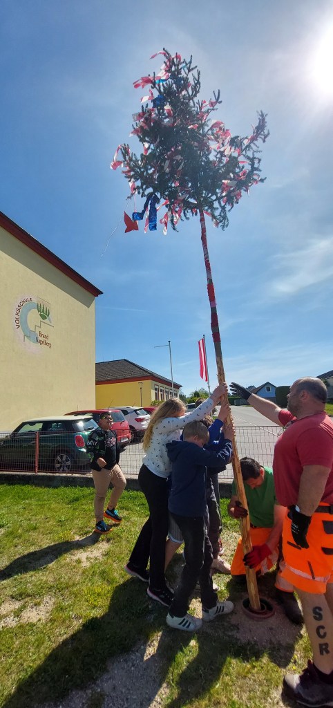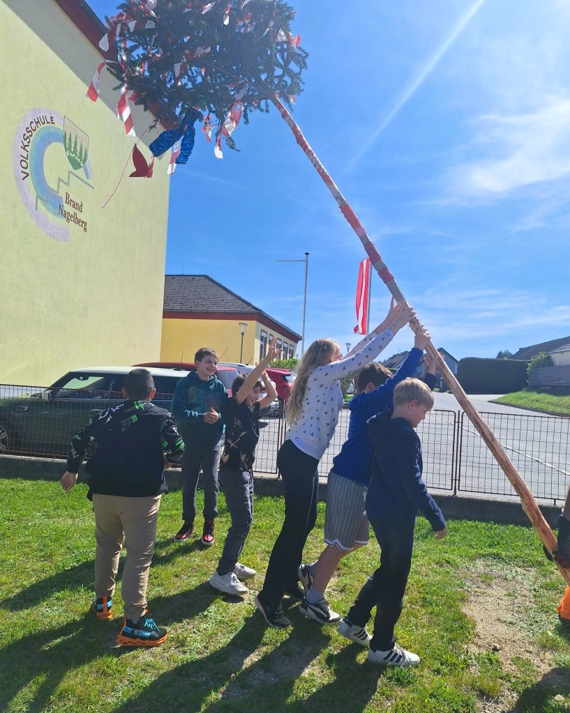 Bereits zum 2. Mal stellten die Kinder der Volksschule einen Maibaum im Schulgarten auf. Dieser wurde dankenswerterweise von Frau Lehrerin Rosenauer und ihrer Familie zur Verfügung gestellt. Nachdem gesungen wurde, durften die Kinder der 4. Schulstufe den geschmückten Baum mit vereinten Kräften aufrichten. Vielen Dank auch für die Vorbereitung und Unterstützung an Jürgen Skarek und Markus Schagginger von der Gemeinde Brand-Nagelberg.