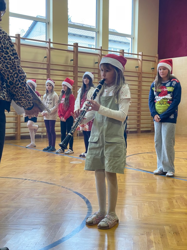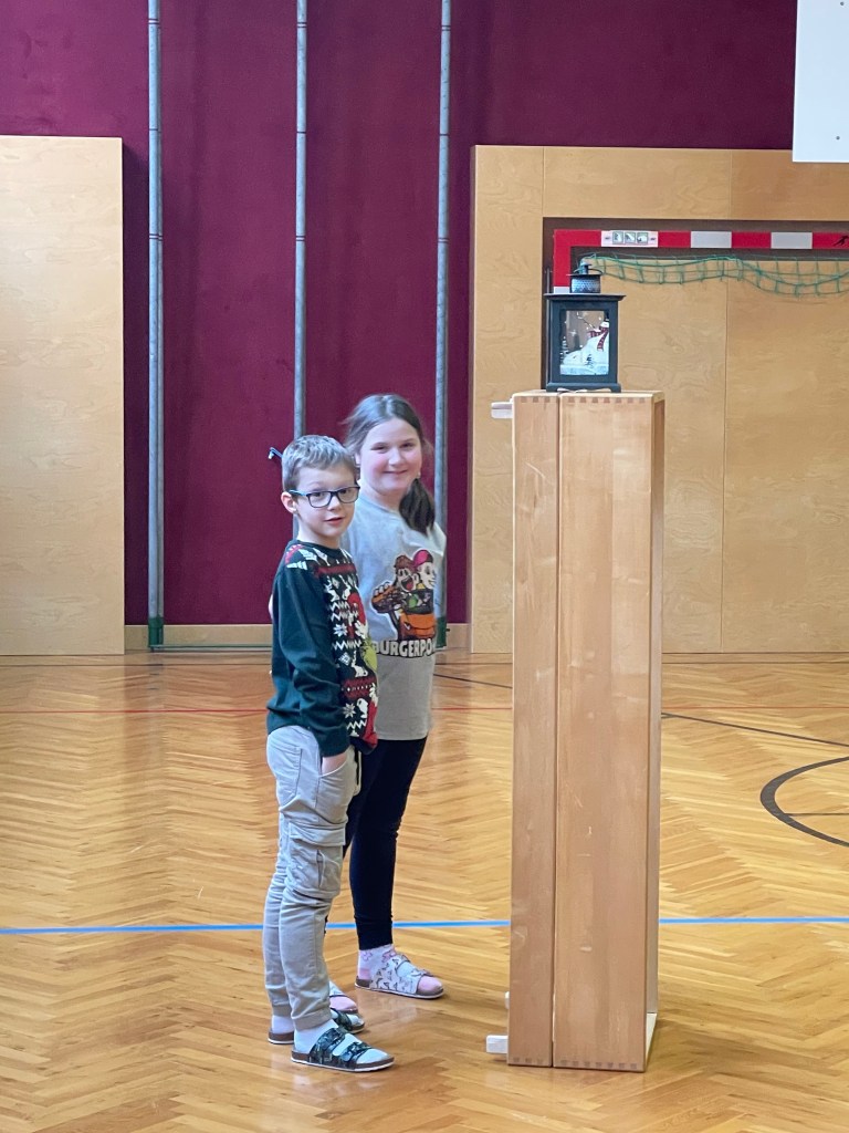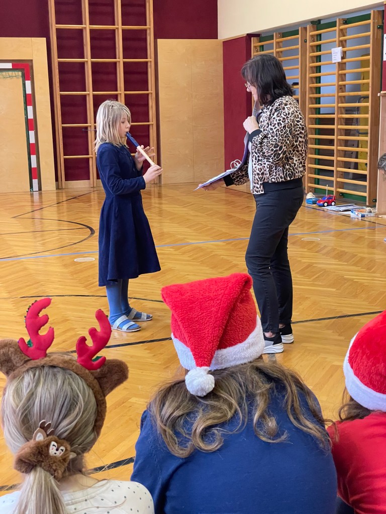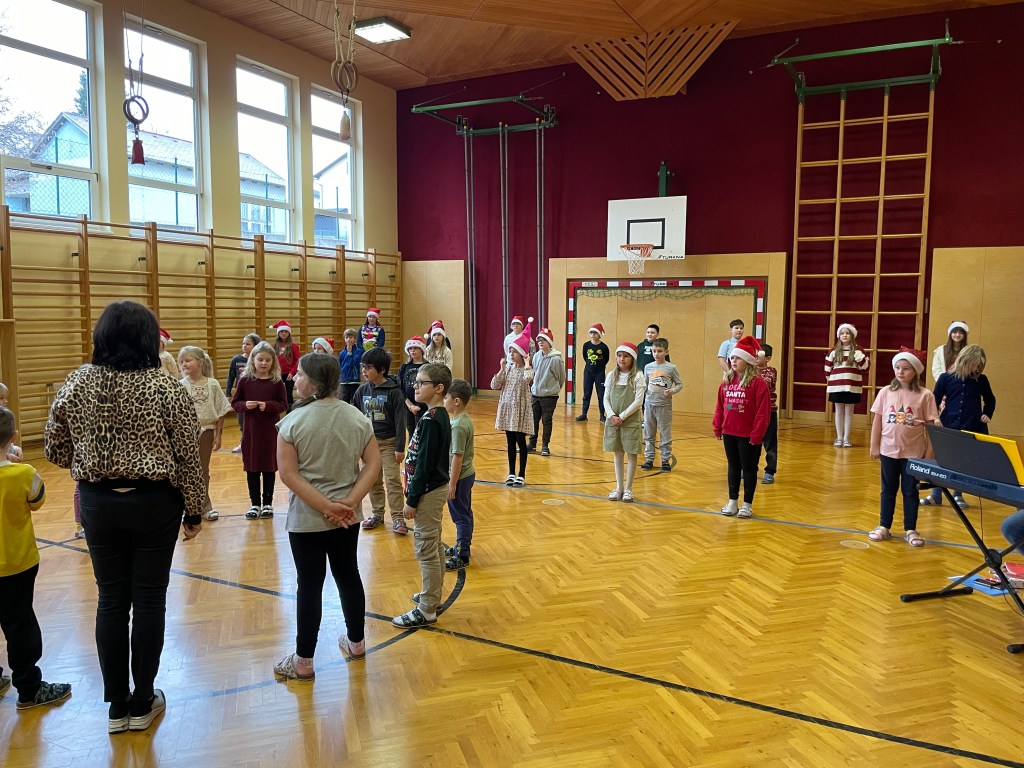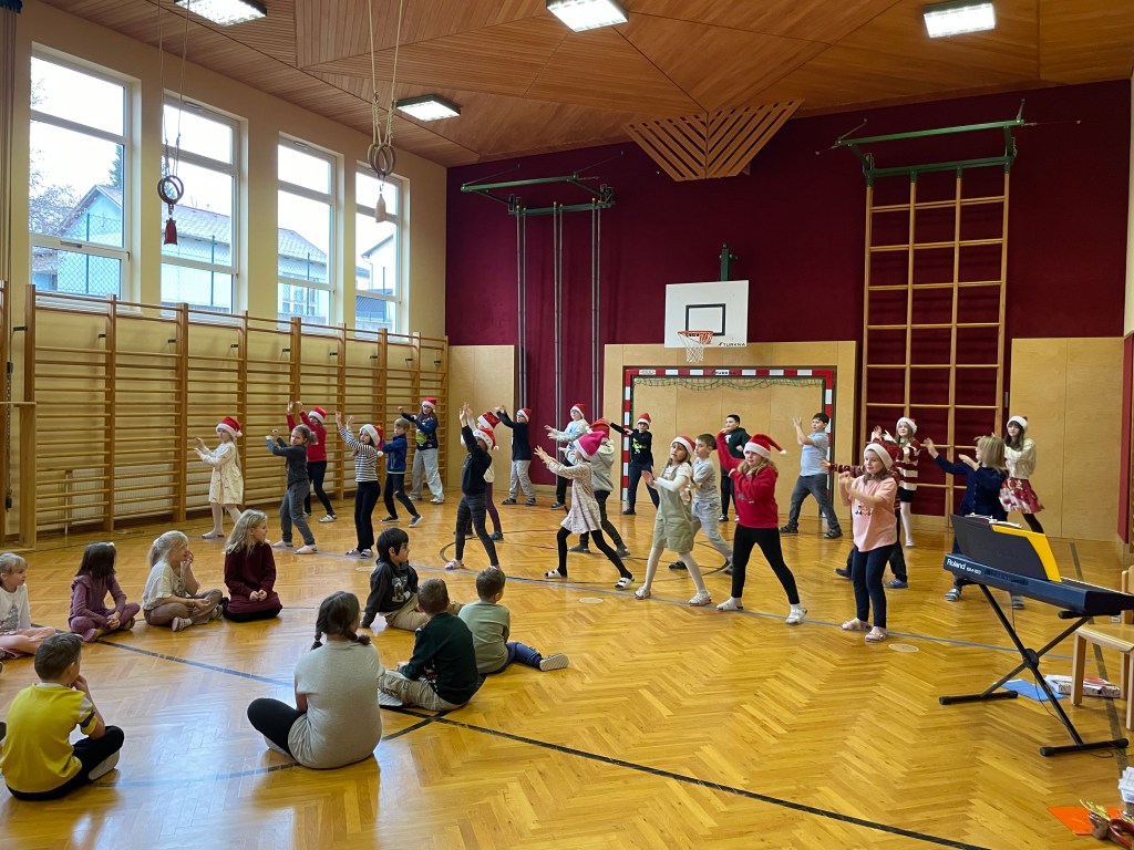 Beide Klassen haben sich in der Adventszeit auf die gemeinsame Weihnachtsfeier im Turnsaal vorbereitet. Es wurden Tänze gelernt, Krippenspiele geprobt, Lieder geübt und am 23.12. war es dann endlich so weit.