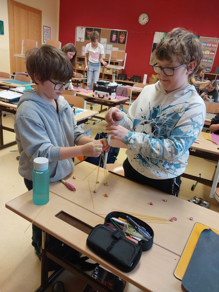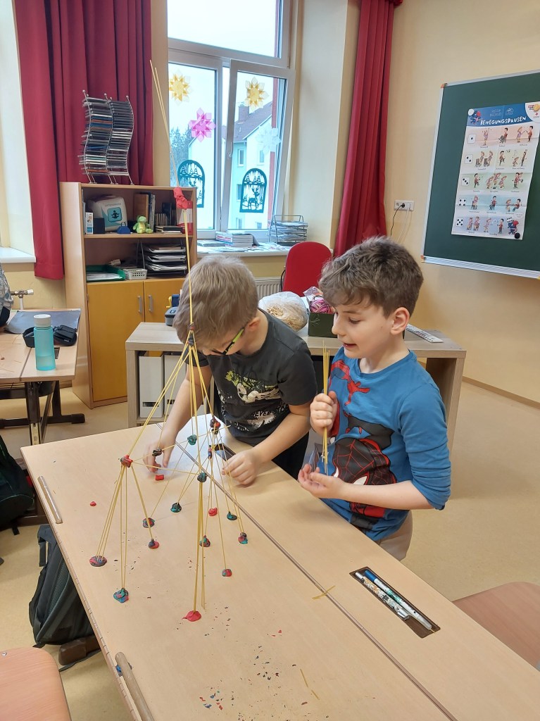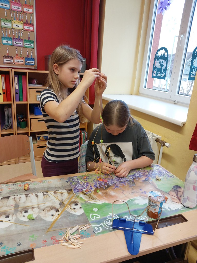 In Teamarbeit wurden aus verschieden Materialien Türme in der 3. und 4. Schulstufe hergestellt.